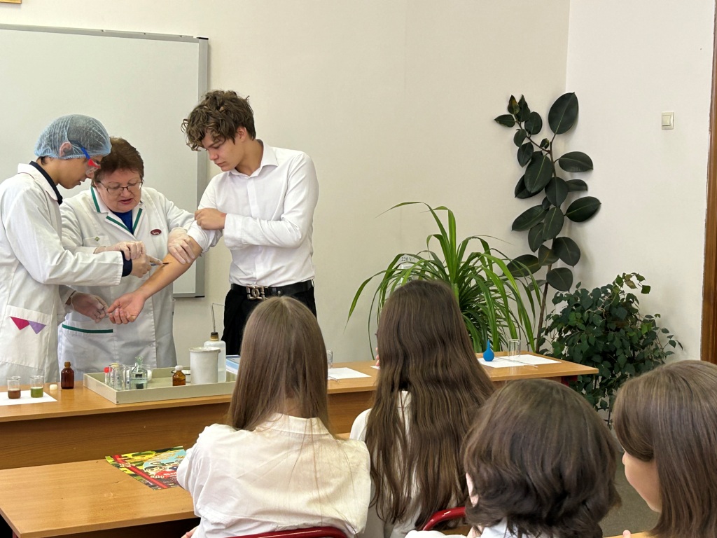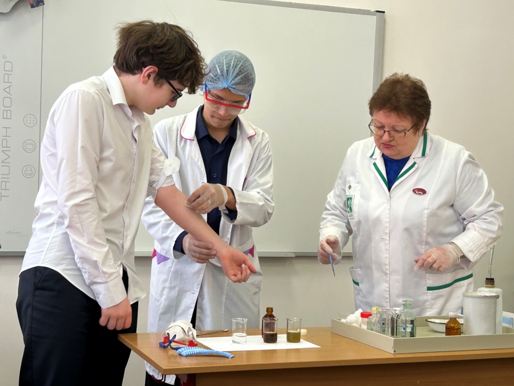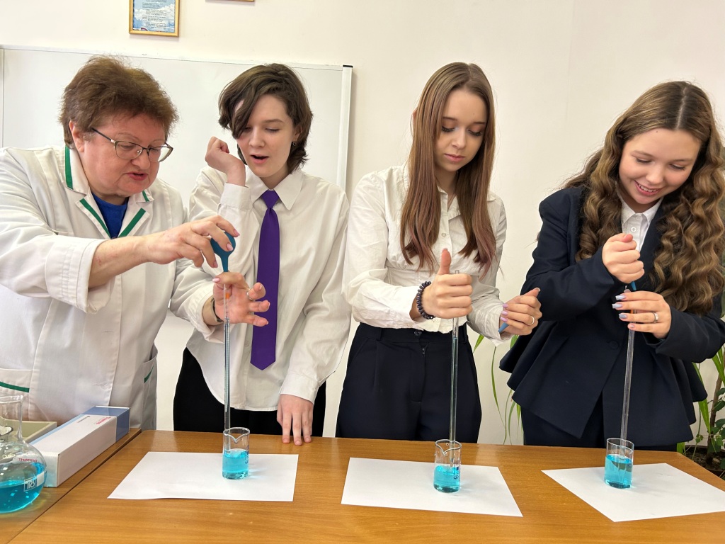 На мастер-классах ребята узнали о профессии лаборанта химического анализа. Под руководством заместителя директора и преподавателя техникума И.В. Улухановой попробовали провести некоторые химические эксперименты самостоятельно.